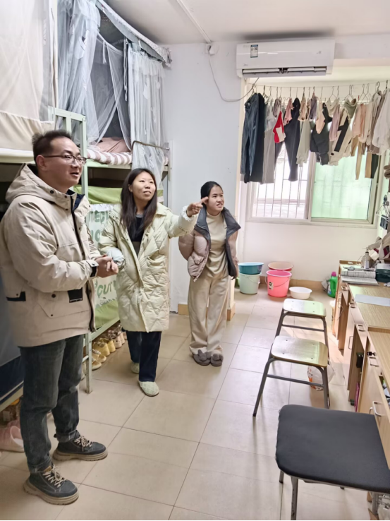 此次走访,老师们重点检查了宿舍用电安全、消防设施以及卫生状况,并且提醒学生注意日常用电安全,增强防火防盗意识,遵守学校各项规章制度。老师们还与学生亲切交流,认真倾听学生们在假期生活中的需求和遇到的问题,了解他们的学习生活情况,耐心解答学生们的疑问。此外,在交流过程中,老师们还为学生们送上了节日的祝福和问候,让同学们感受到了学院的关怀与温暖。同学们纷纷表示,此次走访让他们感受到了学院的关怀与温暖,今后将更加注重安全问题,遵守各项规章制度。