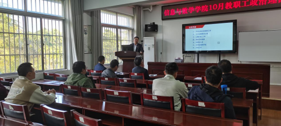 会上,辅导员吴朝晖老师汇报开学以来已完成的工作,介绍党员发展进展,通报学院大学生心理工作情况,强调“心理谈心不仅是解决个体问题的手段,更是构建班级和谐氛围的重要途径。”并且针对学生寝室文化建设,展示了寝室卫生检查的成果与改进措施,强调寝室作为学生生活的重要场所,其卫生状况直接关系到学生的健康与学习状态,应特别关注。同时就学院贫困生认定工作,他表示学院将严格遵循公平、公正、公开的原则,确保每一名符合条件的学生得到资助。