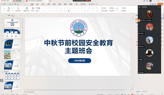 各班班主任、年级辅导员、班长分别在主题班会上强调了中秋期间安全的重要性,并以学校的消防安全、金融安全和学生回家的人身安全为重点,全面开展了防火、防盗、防骗、防交通事故为主要内容的主题班会教育。同时强调了大学生医保的意义和重要性,大学生参加基本医保,是全民医保的重要组成部分,有助于保障必赢官网学生基本医疗需求,提高必赢官网学生健康水平。。