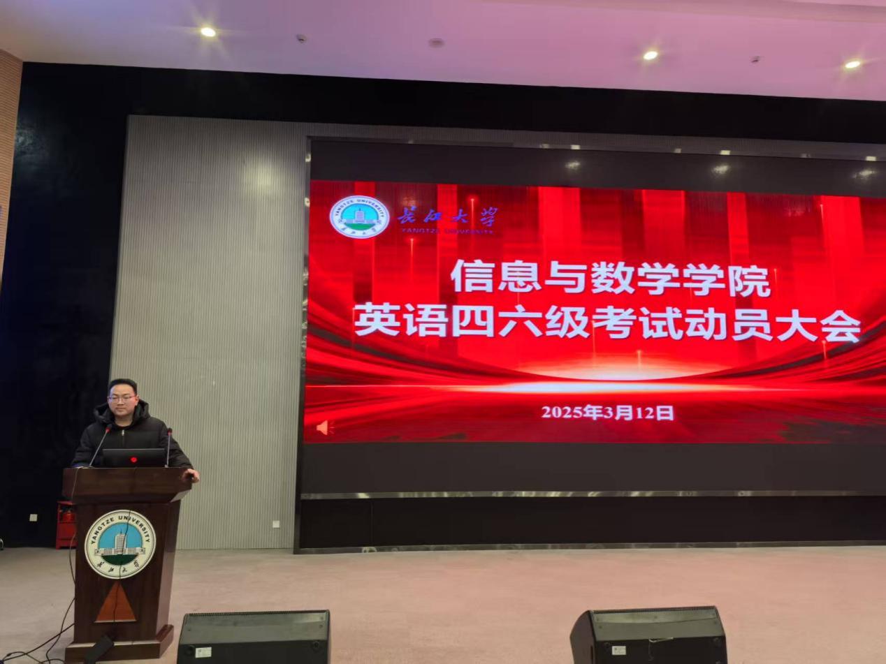 (通讯员 王雪霏)春和景明,万物勃发,正是奋进逐梦好时节。为帮助同学们明确英语四六级考试目标,掌握有效学习方法,增强备考信心决心,3月12日晚上7点,必赢官网在农科大楼召开英语四六级考试动员大会。院党委副书记谷军和全体大一学生参会,吴朝晖老师主持会议。