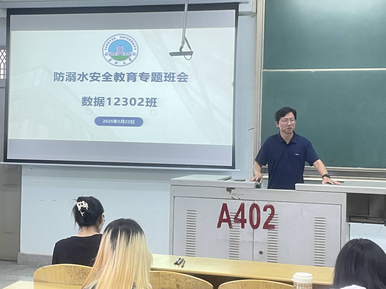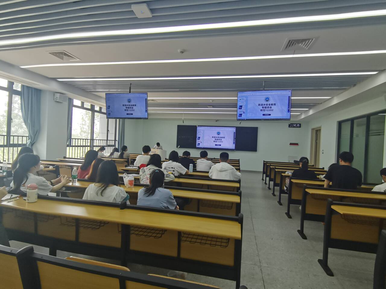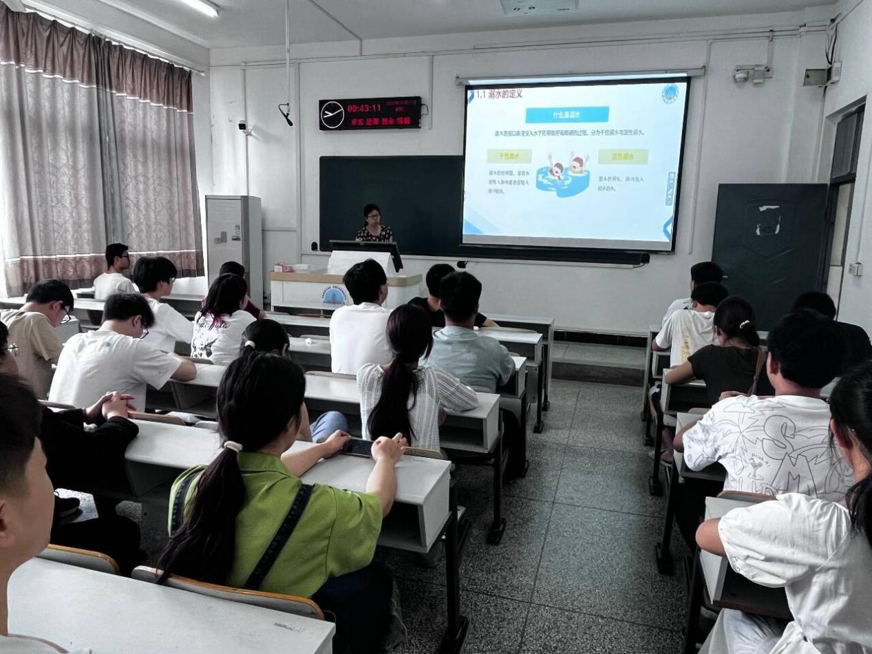班会上,班主任依托精心制作的 PPT,从 "认知 - 警示 - 防范 - 应对" 四个维度展开防溺水专题教学。首先阐释溺水的定义、危害及典型表现,帮助学生建立科学认知;继而以近年真实溺水事故数据与案例为切入点,敲响安全警钟;还着重指出溺水事故多发场景,提醒大家远离危险水域。在传授预防溺水的核心原则环节,重点传授“六不准”“四不要”和“八避免”原则。最后对自救与施救技能进行科普,提升同学们应对溺水危机的能力。