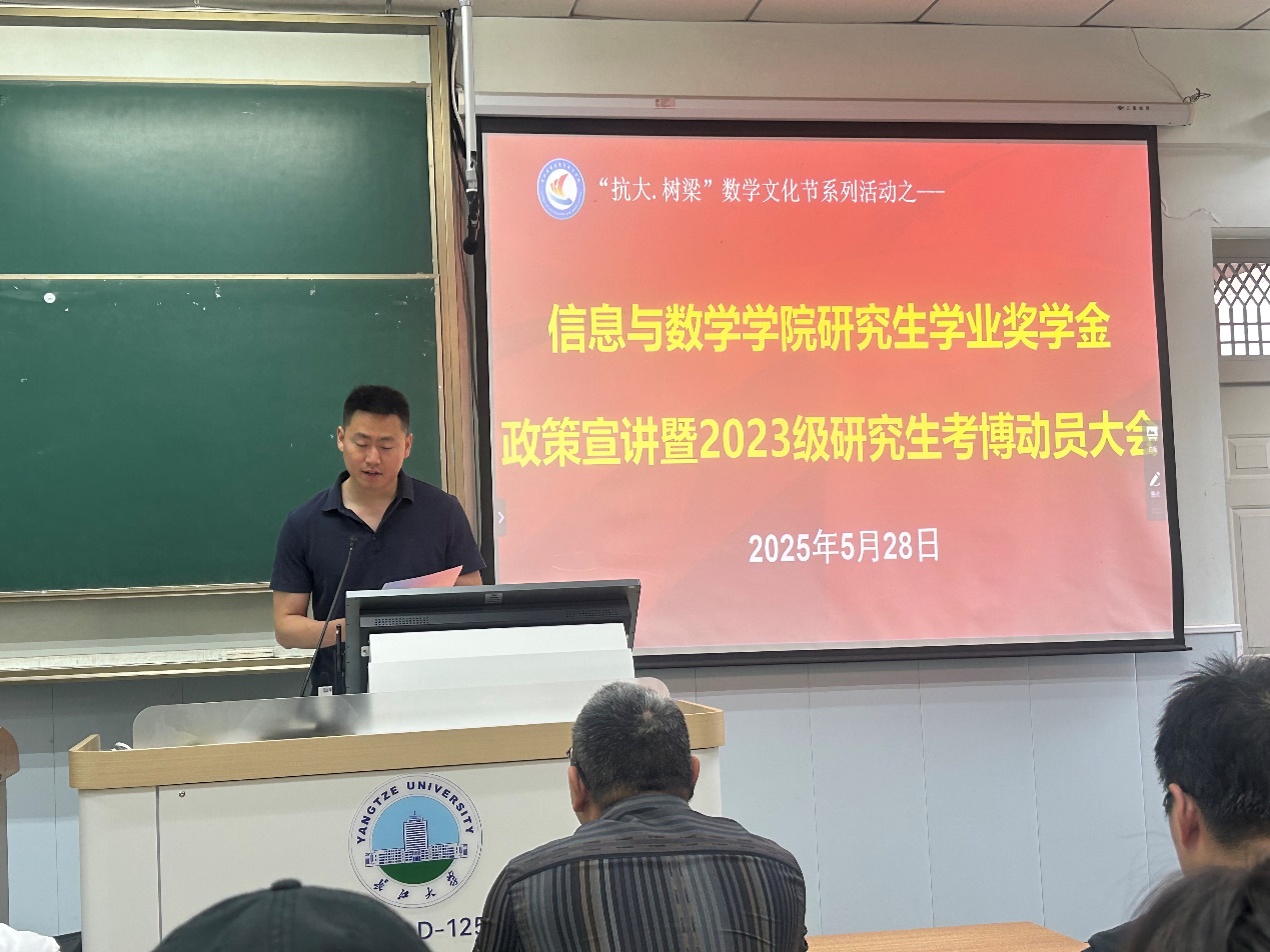 (通讯员 廖蕊)2025年5月28日下午,必赢官网在13-D-125召开研究生学业奖学金政策宣讲暨2023级研究生考博动员大会。本次大会旨在帮助同学们全面了解学业奖学金的设置、评审办法及评定程序,激励学生勤奋学习、积极科研,继续深造,提升学术竞争力。副院长李治、党委副书记谷军、学工办主任姜曼、分团委书记黄何以及全体研一和研二的同学参会,会议由黄何主持。