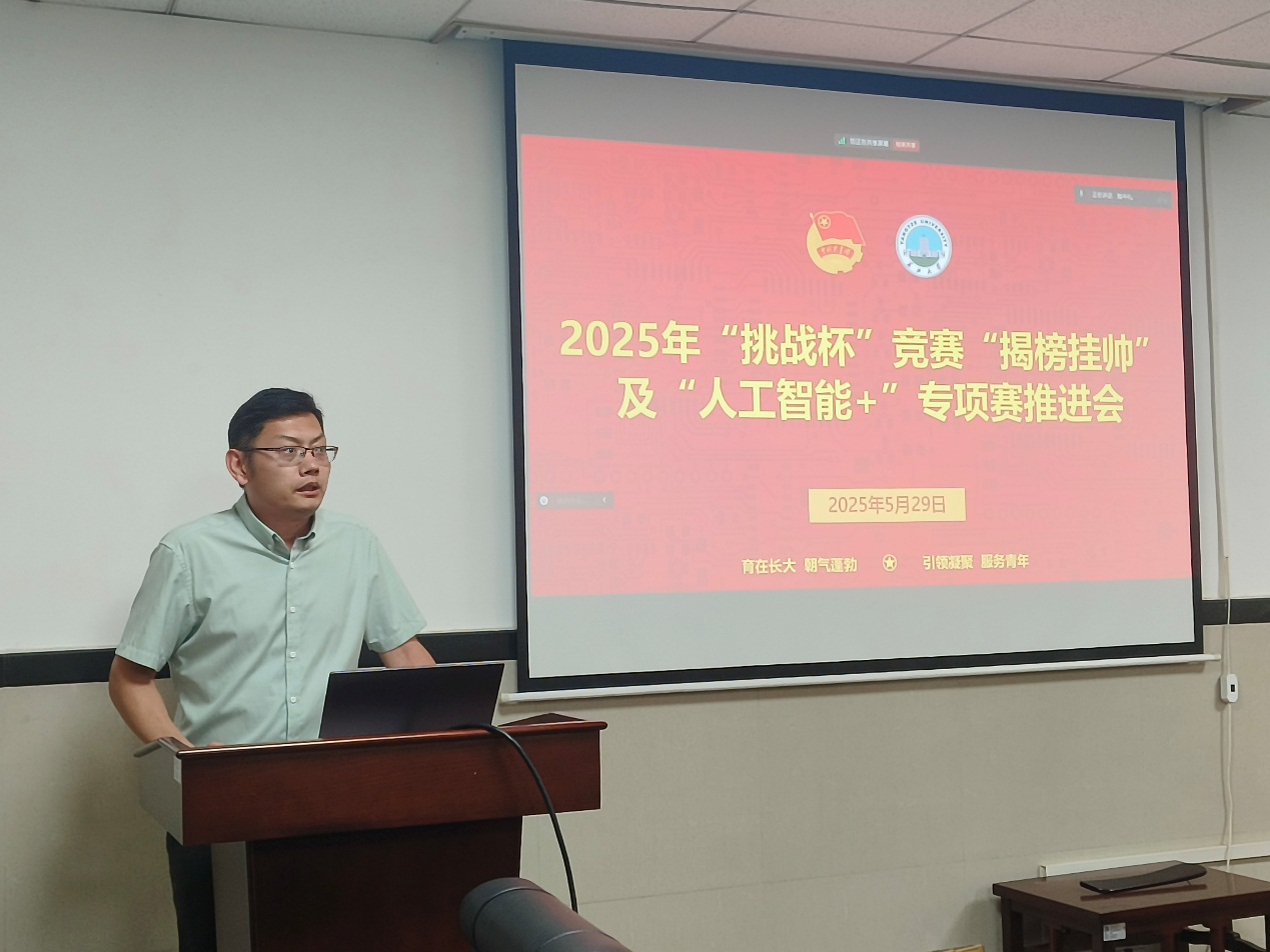 会上,信晓阳率先对“揭榜挂帅”专项赛和“人工智能+”专项赛进行重点阐释,“揭榜挂帅”专项赛聚焦国家战略需求,以“揭榜解题”模式鼓励青年学子攻克实际难题;“人工智能+”专项赛则强调技术融合创新,推动人工智能在多领域的实践应用。随后,他从选题方向、赛道要求、材料要求三方面展开细致解析,建议选题须紧扣时代热点,赛道选择要贴合项目特性,并着重强调申报材料需兼具规范性与创新性。