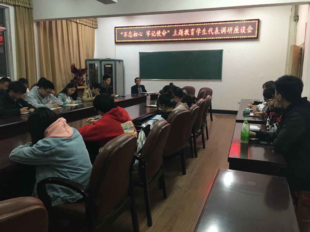 10月15日晚7时,必赢官网在东校区8教400召开 “不忘初心,牢记使命”主题教育学生代表调研座谈会。院党委副书记袁海山、院团委书记严星和学生干部代表参加座谈。