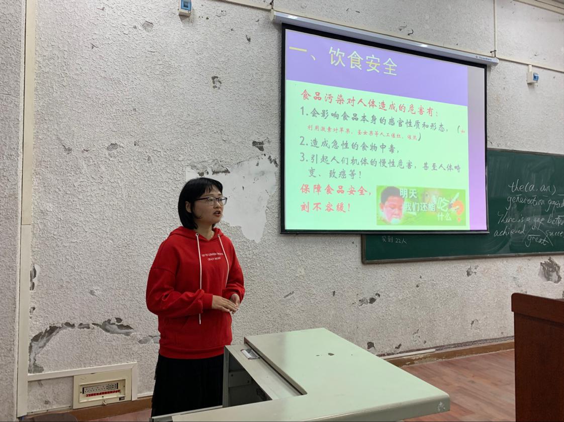 任玉婷老师以“大学生食宿与交通安全”为主题,就饮食安全、住宿安全、出行安全三个方面对同学们展开安全教育。在饮食安全方面,任老师以一段发人深省的视频分析市场现状,指明不健康食品的危害,提醒同学们确保饮食的卫生与安全。紧接着,任老师就住宿安全方面出现的问题与同学们展开交流,她通过列举近年来各高校发生的安全事故,向大家强调妥善保管个人财务和严格遵守宿舍管理条令的重要性。随着一段真实的车祸事故现场视频的播放,本次大学生食宿与交通安全讲座进入尾声。任玉婷老师在总结中提到,长鸣交通安全警钟,恪守出行安全规则,方使生命之花常开不败。