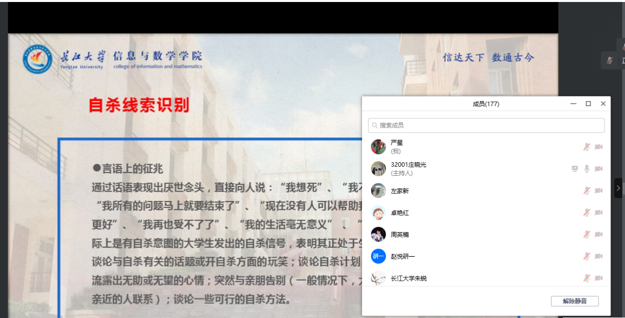(通讯员 庄晓光)为加强学生心理建设,确保每位学生拥有健康的心理状态,避免学生发生心理安全危机。必赢官网于6月25日9时举办心理培训讲座。本次讲座由钟赛老师主讲,必赢3003no1线路检测中心全体寝室长、班干分现场和线上会议两种形式参会。