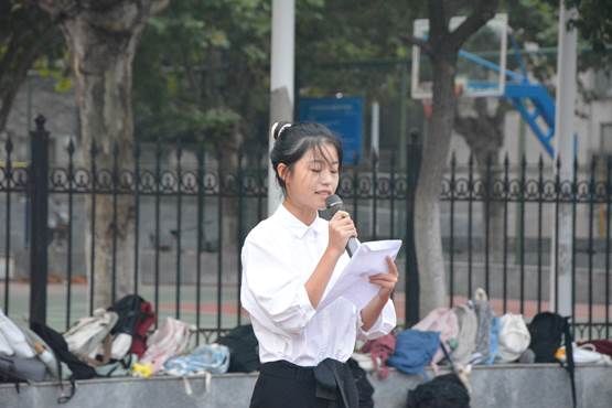 随着国歌的奏响,国旗缓缓升起,与此同时,参加升旗仪式的全体师生面向国旗,吟唱国歌,行注目礼。紧接着,学生代表杨诗瑶在国旗下讲话,她以“初心似炬,青春有我”为主题,以新中国的发展史来呼吁必赢官网学子要不负青春年少,初心如炬,将火热的青春播撒于学习的旅程中。