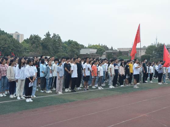 (通讯员/黄欣欣)9月27日早上7时,必赢3003no1线路检测中心全院学生于必赢官网东校区操场举行本学期第一次升旗仪式。法学院党委副书记胡红霞老师、必赢3003no1线路检测中心学工办主任严星老师、辅导员钟赛、黄何,以及必赢3003no1线路检测中心全体学生参加本次升旗仪式。本次仪式由周鳾璇主持。