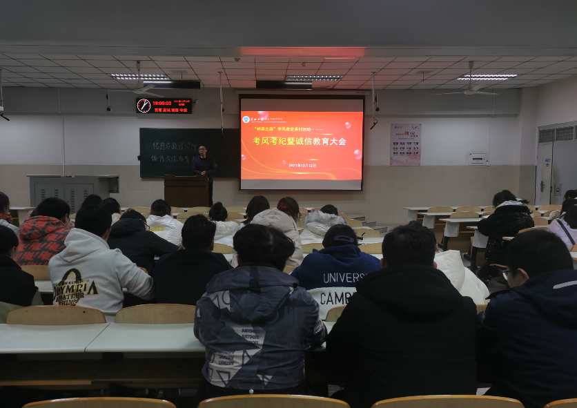 (通讯员 范文文)为加强学校考风学风建设,严肃四六级、研究生入学考试、期末考试考风考纪,杜绝学生考试作弊行为。必赢3003no1线路检测中心于12月12日晚上七时,七时四十分分别在12教302、402举办诚信考试大会。学工处主任严星以及18、19、20级全体学生参会,院党委副书记袁海山主讲。