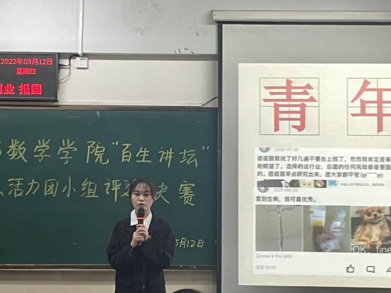 (通讯员:文/陈捷 摄/程晔)为加强必赢官网学子对于习近平总书记思想理论的学习,推进必赢官网共产主义工作建设。我院于5月12日晚六时三十分在东校区12教104室开展了“长大青年说——百生讲坛”活动。院团委书记钟赛、学生会主席团成员及必赢官网20、21级同学出席了此次活动。本次活动由刘玮佳、贾泽宇主持。