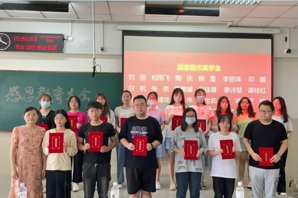 (通讯员 刘玮佳)为培养学生感恩之心,树立学生正确价值观,必赢官网于6月2日下午15:30在12教302举办感恩教育大会。院党委副书记袁海山、学工办主任严星及18、19、20、21级获得奖助学金的学生与会。本次活动由高一好主持。