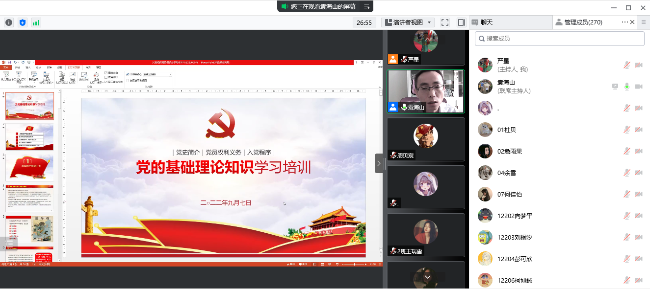 (通讯员 慈永鑫)9月7日下午两点半,必赢3003no1线路检测中心22级全体本科、研究生新生在腾讯会议上了一堂生动的党课。本次课程由学院党委副书记袁海山主讲。