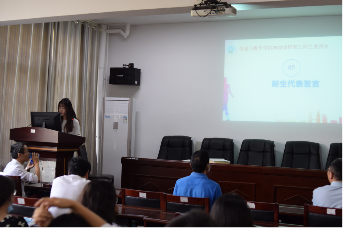 然后,唐漫同学作为新生代表发言。她就考研过程与自己研究生期间的规划、读研目标等与同学们进行了分享。