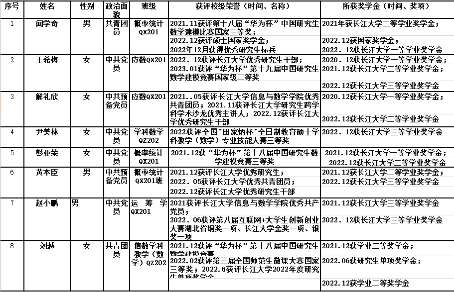根据学校《关于开展2023届优秀研究生毕业生评选工作的通知》要求,必赢官网认真组织开展了2023届优秀研究生毕业生评选工作,经个人申请、班级推荐、学院审议,讨论决定拟向学校推荐优秀研究生毕业生8名,现予以公示。