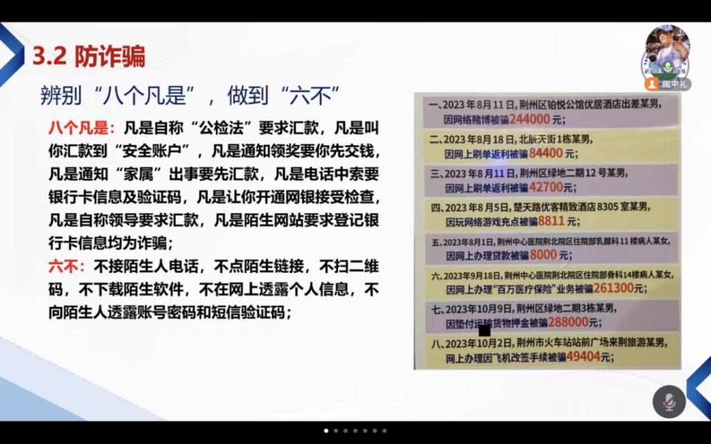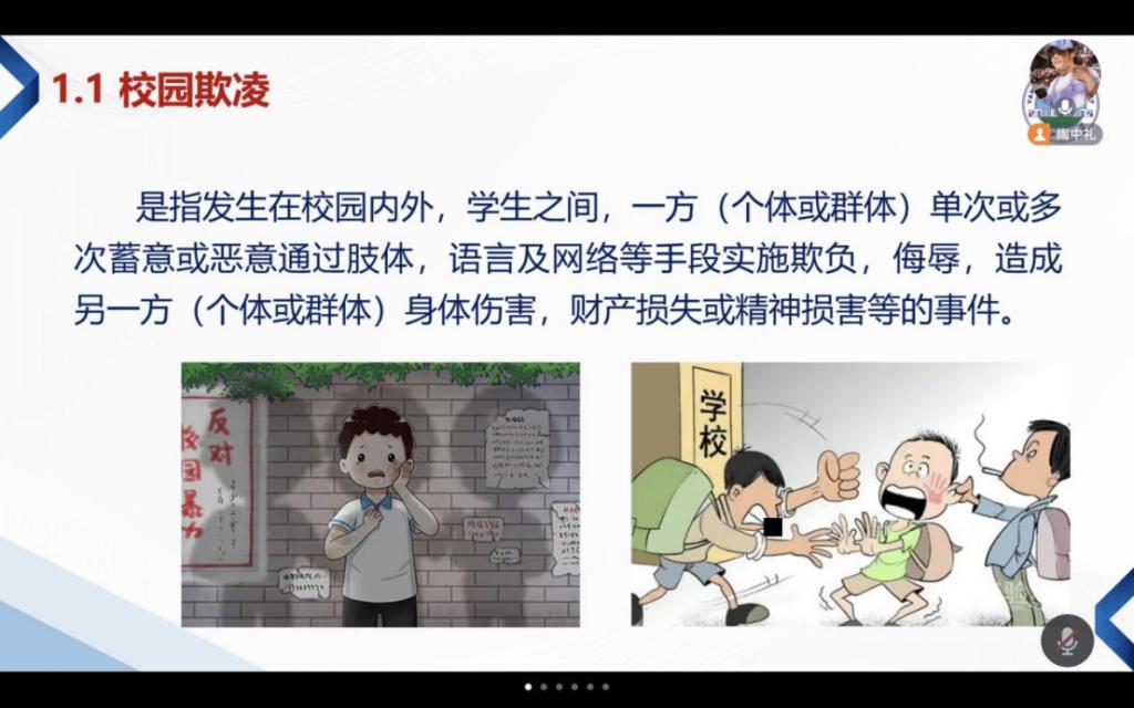 针对校园霸凌情况,主持人首先介绍什么是校园霸凌,用真实案例为同学们展示了校园欺凌给受害者带来的伤害及严重后果,并着重讲解当遭遇校园欺凌、暴力时大家应如何应对。各班级也通过讲解案例、播放视频等形式,向同学们普及了端午节期间的安全知识。同时重点讲解了防火、防溺水、防交通事故、防控传染病、防食物中毒、防网络电信诈骗等方面的知识,提醒同学们在享受假期的同时,不忘安全,确保自身和家人的生命财产安全。