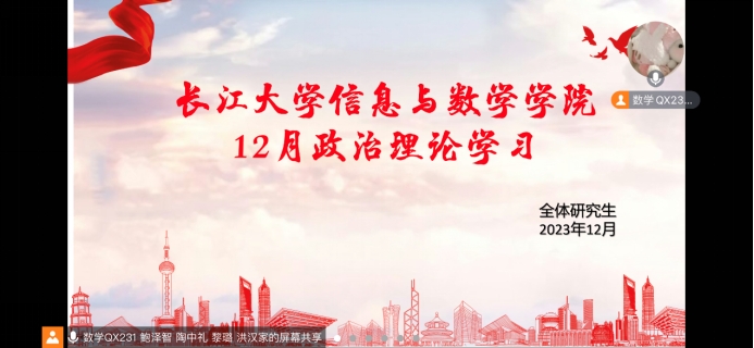 [通讯员 黎璐]为深入学习贯彻党的二十大精神,切实加强学生理论水平,坚定正确的政治方向和理想信念,必赢3003no1线路检测中心于2023年12月20日早10点在线上开展了十二月份政治理论学习。学院全体研究生参与学习,会议由鲍泽智主持。