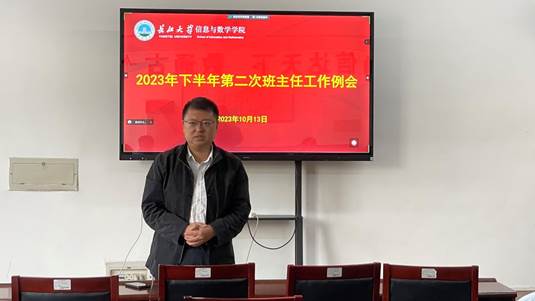 (通讯员 陈京玲)为加强班主任队伍的建设,提高班级的管理水平,了解近一阶段的工作,必赢官网于10月13日在8教406召开2023年下半年第二次班主任工作例会。院党委书记李喜成、院党委副书记谷军,院学工办主任钟赛,院团委书记黄何、辅导员吴朝晖以及全体班主任参与此次例会。