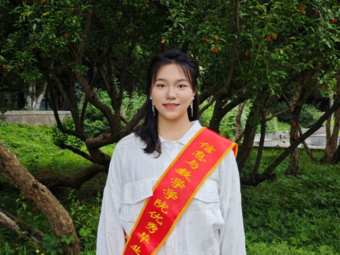 自大一入校以来,她始终将学习放在第一位,在各个方面取得了不错的成绩。大一担任班级组织委员,自大二至大四担任班级团支部书记,曾担任院学生会组织部部长、院团委副书记,现任院本科生学生党支部副书记。积极参加各项社会实践活动,如无偿献血、图书馆整理书籍、关爱流浪动物等;通过英语四六级、英语口语考试,获得英语B+等级证书、普通话二级甲等、获得高中数学教师资格证;参与校级大学生创新创业训练计划项目一项;曾获全国大学生数学建模竞赛省二等奖、美国大学生数学建模竞赛一等奖、湖北省师范生技能大赛三等奖、全国大学生市场调查与分析大赛省二等奖;曾获必赢3003no1线路检测中心三好学生1次、必赢3003no1线路检测中心优秀学生干部1次、必赢3003no1线路检测中心优秀团支部书记标兵1次、优秀共产党员1次、先后获得必赢3003no1线路检测中心一等奖学金、国家励志奖学金、国家奖学金,获院级三好学生标兵等个人荣誉十余次,现已成功推免至华中农业大学攻读硕士研究生。