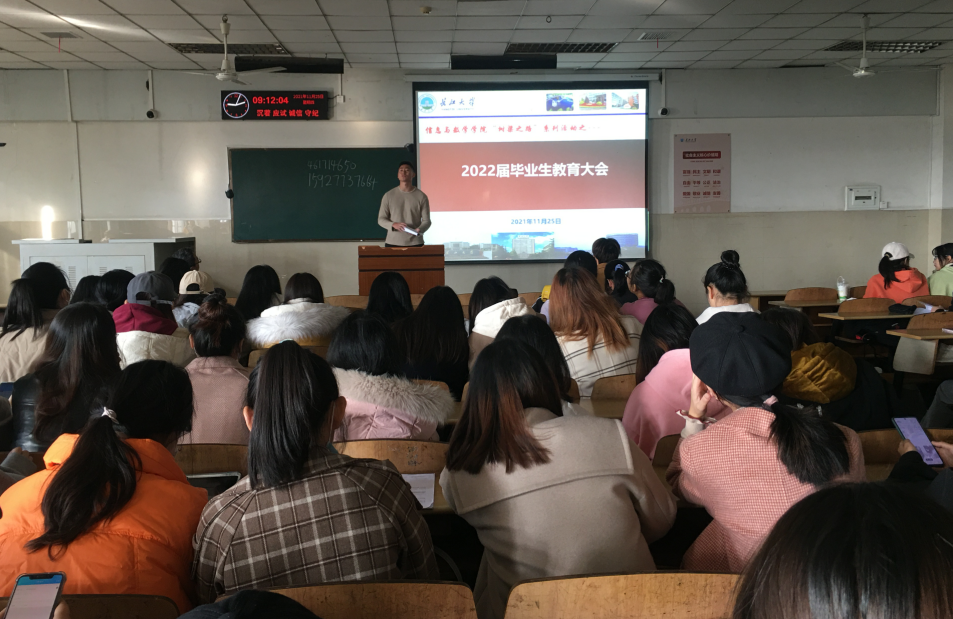 (通讯员 唐漫)11月25日上午8:30,必赢3003no1线路检测中心2018级毕业生教育大会暨校友报告会在12教202圆满召开。出席本次会议的人员有院党委副书记袁海山、学工办主任严星、辅导员黄何以及2018级全体毕业生。本次大会由院党委副书记袁海山主持。