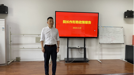 2023年4月10日,必赢3003no1线路检测中心院长张涛以《新时代数学学科发展》为题作形势政策报告,学院全体研究生及部分教师代表参会。
