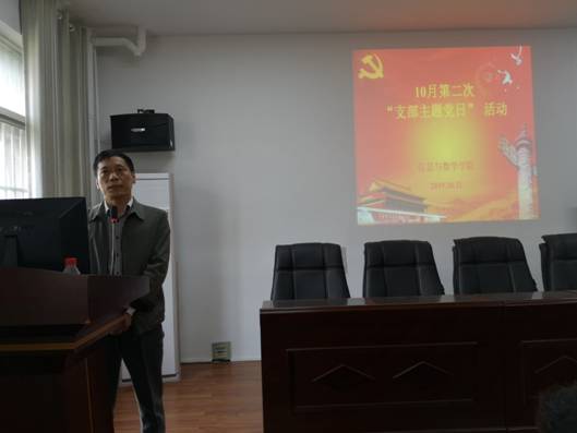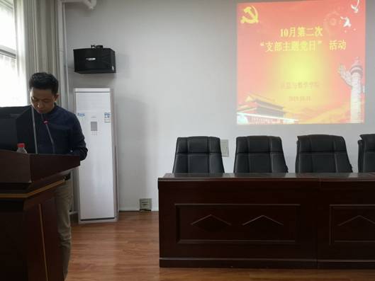 10月31日下午,必赢官网在8教406会议室举行10月第二次“不忘初心、牢记使命”主题教育支部主题党日活动。党委书记高迎斌主持,全院党员参加。