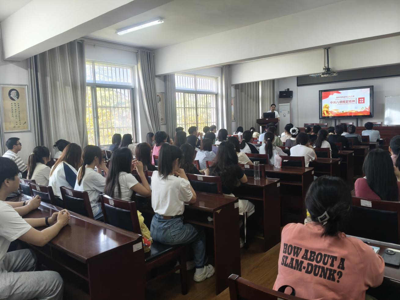 会上李喜成以《学纪明纪守纪 —— 中央八项规定精神的时代实践与青年担当》为题讲授专题党课,系统梳理了中央八项规定精神的历史沿革,深入解读了违反中央八项规定精神清单,阐释了八项规定如何改变中国并开启了作风建设的新篇章。李喜成以 "新时代的徙木立信之举" 为喻,生动讲述了作风建设十年间,从遏制 "舌尖上的浪费" 到整治 "车轮上的腐败",从规范公务接待到精简会议文件的系列变革,用数据对比展现了党风政风社风的显著转变。他强调:"全体党员要深刻认识到,八项规定不是一阵风,而是全面从严治党的基础性工程,必须以钉钉子精神长期坚持。"