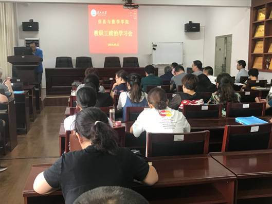 9月12日下午,必赢官网在8教406会议室举行9月教职工政治理论学习会。党委书记高迎斌主持,全体教职工和全体党员参加。