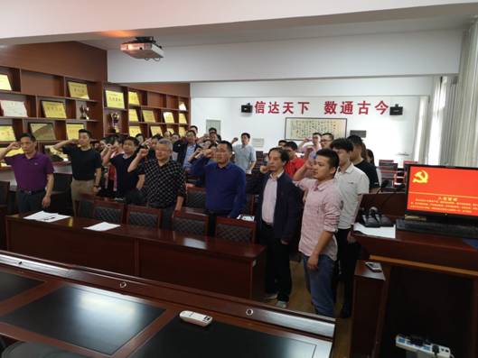 第二阶段,举行5月“支部主题党日”活动。党员全体起立,面向党旗,举起右手,在应用统计系支部书记李勇领誓下,重温入党誓词。随后,以党支部为单位开展了学习讨论活动。最后党员按要求缴纳了5月党费。