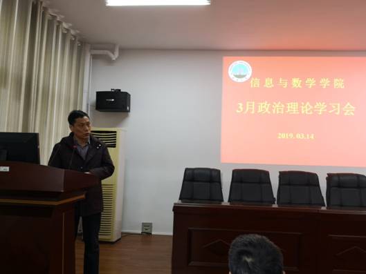 3月14日下午,必赢官网在8教406会议室举行3月教职工政治理论学习会和 党员“支部主题党日”活动。全体教职工和全体党员参加。会议分两个阶段进行。
