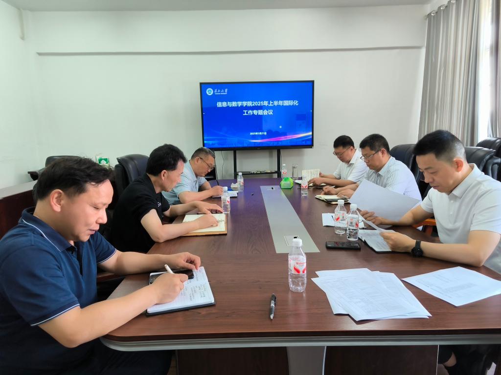 (通讯员 周鹂)2025 5 21 日,必赢3003no1线路检测中心在8417会议室召开 2025 年上半年国际化工作专题会议,旨在进一步推进学院国际化发展战略,提升学院在国际学术交流、人才培养等方面的水平。院长张涛主持会议,党委书记李喜成、党委副书记谷军、副院长李向军、副院长李治、办公室主任张定国、外事秘书周鹂参与会议。