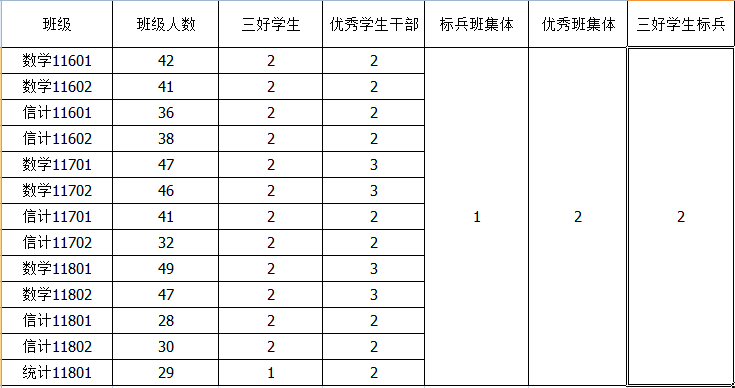 2、优秀学生干部中须包含优秀寝室长至少5人,班级安全员3人。