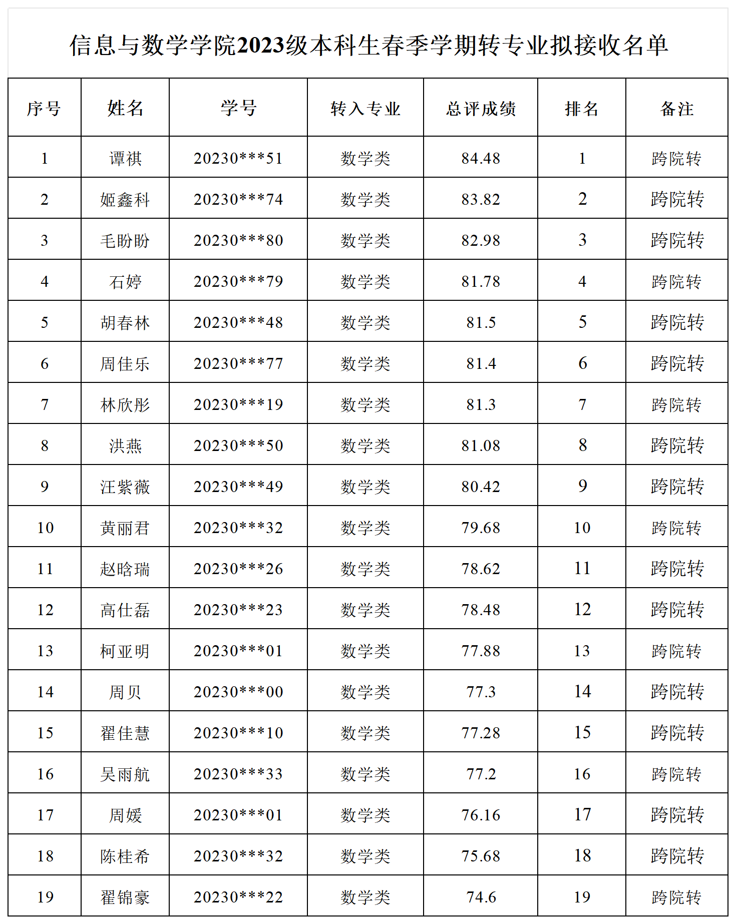 根据《必赢3003no1线路检测中心普通本科生专业分流与转专业管理办法(试行)》(长大校发〔2019〕260号)精神,按照《关于开展2023级普通本科生春季学期转专业工作的通知》和《必赢3003no1线路检测中心2023级普通本科生转专业考核工作方案》要求,经学生本人申请,学生所在学院和本科生院资格审核,必赢官网对拟转入学生进行了面试考核。现将必赢3003no1线路检测中心2023级本科生春季学期转专业拟接收名单予以公示。