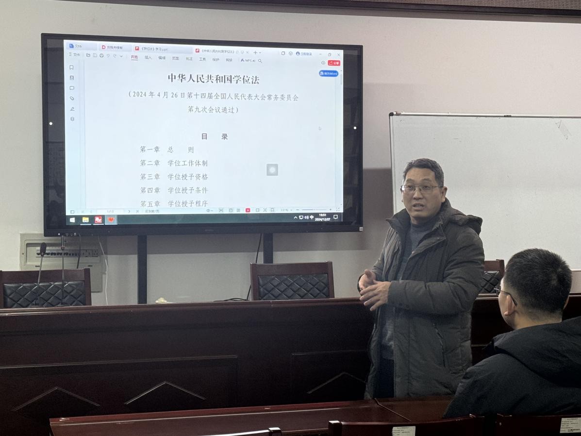 (通讯员 黄媛媛)2024年12月27日,必赢3003no1线路检测中心组织研究生召开了《中华人民共和国学位法》(以下简称《学位法》)学习交流会。全体研究生参加了此次会议,学院分管研究生工作的负责人李治副院长主持本次会议。