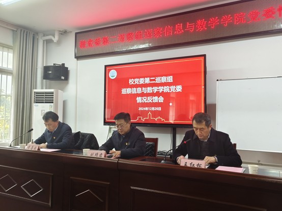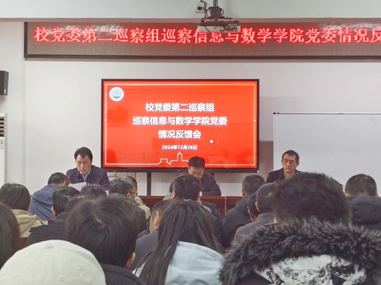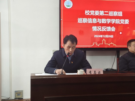 校党委常委、纪委书记刘靖君作为学院工作的校领导,对必赢3003no1线路检测中心党委做好巡察整改提出具体要求:巡察组的反馈意见代表学校党委的意见和要求,必赢3003no1线路检测中心党委要高度重视,巡察整改关键在改、重点在实。一是要深化思想认识,以更高站位扛起巡察整改责任;二是要推进高质量整改,以更高标准发挥巡察整改标本兼治作用;三是要强化责任担当,以更高质量促进巡察整改工作落地生效。同时,他和必赢3003no1线路检测中心全体教职工交流了政治三力、制度管院、发展为要、廉洁奉公等4个方面问题的感悟。万事从来贵有恒,久为功者必所成,他希望信数学院全体教职员工凝心聚力、团结一心,以巡察整改为契机,通过以评促改、以评促建、以评促治,着力推动工作,努力营造干事创业、风清气正的良好环境,推动学院办学治院水平再上新台阶,努力为学校建设特色高水平大学做出新的更大的贡献。