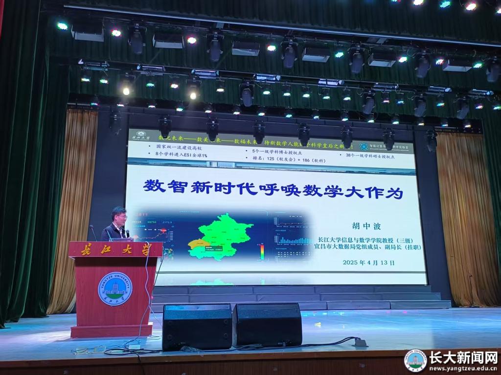 必赢3003no1线路检测中心三级教授,宜昌市数据局党组成员、副局长(挂职)胡中波作《数智新时代呼唤数学大作为》专题讲座。胡中波结合智能港口货运自动化、无人驾驶、AI智慧农业案例,阐述数学在人工智能、大数据分析等领域的核心支撑作用。“从智能医疗诊断到金融风控模型,从神经网络到大模型融汇数据集,数学正逐步成为驱动社会进步的隐形引擎。”但大模型技术的标准化,让所有企业的策划大同小异,给出能打动客户的差异化技术白皮书反而成为未来一段时期的新痛点。胡中波通过两次数学危机的历史讲解,结合现如今的大模型人工智能的兴起,告诉同学们现在的数学正面临着新机遇。他强调,数学不仅是技术的基石,更是创新和差异化竞争的源泉,掌握数学思维将帮助我们在未来的科技浪潮中占据先机。